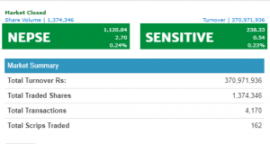 नेप्से परिसूचक साताको पाचौ दिन २ दशमलव ७० अङ्कले बढेर ११२० दशमलव ८४ अङ्कमा बन्द भएको छ । कारोबार रकम ३७ करोड ९ लाख रुपैयाँ पुगेको छ ।