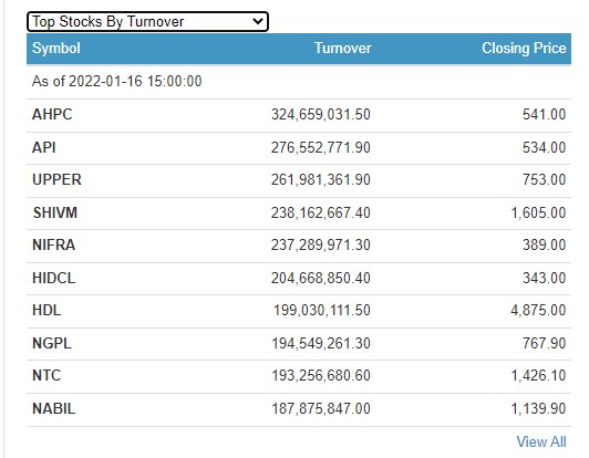 त्यस्तै, आज अपि पावर कम्पनीको ३० करोड ४४ लाख रुपैयाँको शेयर कारोबार भएको छ । कम्पनीको शेयर मुल्य ५३४ रुपैयाँ कायम भएको छ । अपर तामाकोशीको २९ करोड ७४ लाख रुपैयाँको शेयर कारोबार भएको छ । शिवम् सिमेन्टको २६ करोड ३३ लाख रुपैयाँको शेयर कारोबार भएको छ ।