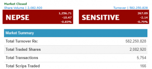 नेप्से परिसूचक साताको पहिलो दिन १० दशमलव ४७ अङ्कले घटेर १२५६ दशमलव ७१ अङ्कमा बन्द भएको छ । कारोबार रकम ५८ करोड २२ लाख रुपैयाँ पुगेको छ ।