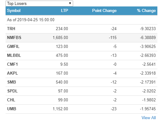 आज सर्वाधिक गुमाउने १० कम्पनी :