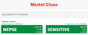 नेप्से १३ अंकले बढेर १२०७ को विन्दुमा, कारोवार रकम १७ करोड ४१ लाख