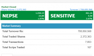 नेप्से २३.८९ अंकले बढेर १२३४ को विन्दुमा, जीवन र निर्जीवन बीमाको उपसुचकमा वृद्धि