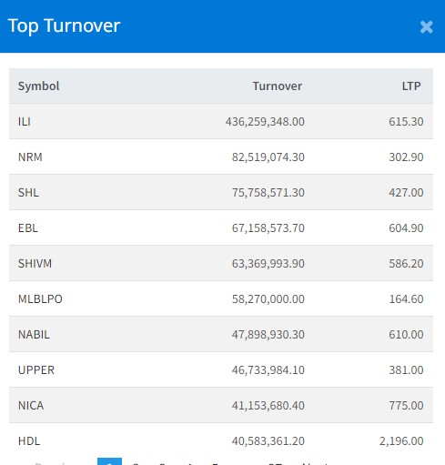 नेप्से ३ अंकले घट्दा यी हुन् टप टेन कारोबार भएका कम्पनी