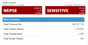 नेप्से ३ अंकले घट्यो, २९ करोडमाथिको कारोबार