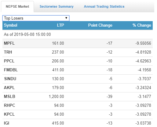 आज सर्वा्धिक गुमाउने १० कम्पनी :