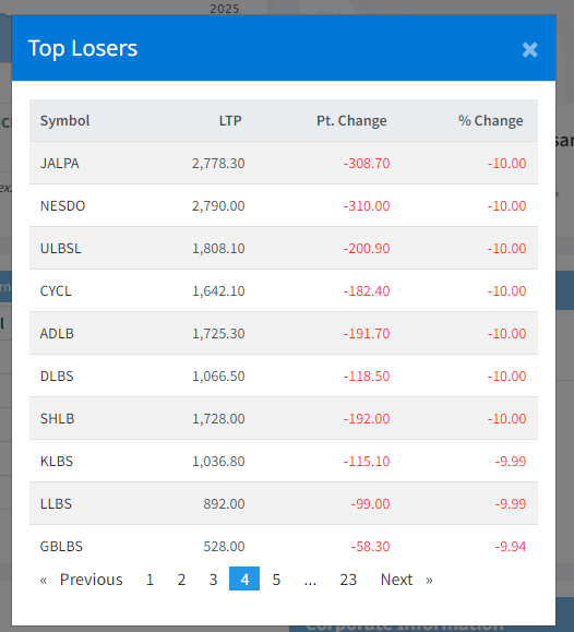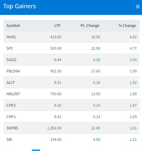 आज सबैभन्दा धेरै नेपाल हाइड्रो डेभलपर्सका लगानीकर्ताले कमाएका छन् । यस कम्पनीका लगानीकर्ताले ४ दशमलव ८२ प्रतिशतले कमाएका छन् । सामलिङ पावर कम्पनीका लगानकिर्ताले ४ दशमलव ७७ प्रतिशतका दरले कमाएका छन् ।