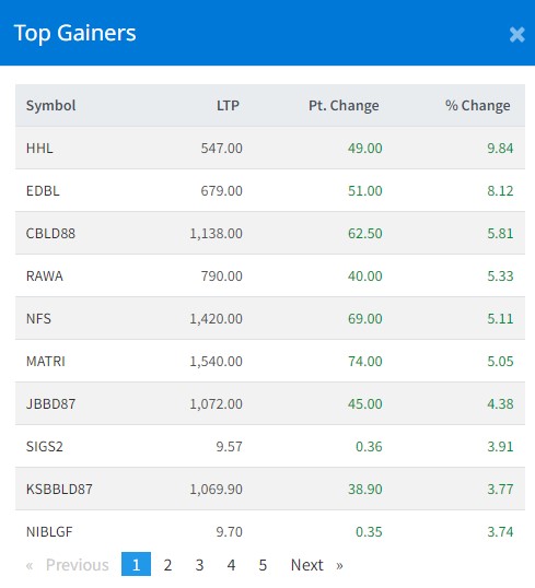 काठमाडौं । आज शेयर बजार नेप्से परिसूचक ६९ दशमलव ०२ अंकले घटेर २,५२९ को विन्दुमा कायम भएको छ । आज १४ कम्पनीको मात्रै शेयर मूल्य बढेको छ भने २२९ कम्पनीको शेयर मूल्य घटेको छ । आज सबैभन्दा धेरै हिमालयन हाइड्रोपावर कम्पनीका लगानीकर्ताले कमाएका छन् । आज यस कम्पनीका लगानीकर्ताले ९ दशलमव ८४ प्रतिशतका दरले कमाएका छन् । एक्सेल डेभलपमेन्ट बैंकका लगानीकर्ताले ८ दशलमव १२ प्रतिशतका दरले कमाएका छन् । रावा इनर्जीका लगानीकर्ताले ५ दशलमव ८१ प्रतिशतका दरले कमाएका छन् ।