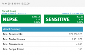 मा बन्द भएको छ । कारोबार रकम ३७ करोड १६ लाख रुपैयाँ पुगेको छ ।अन्य र जीवन बीमा क्षेत्रको परिसुचक बाहेक अरु सबै क्षेत्रको परिसुचकमा वृद्धि आएको छ । सबै भन्दा धेरै अन्य क्षेत्रको परिसुचक ० दशमलव ५४ प्रतिशतले घटेको छ ।
