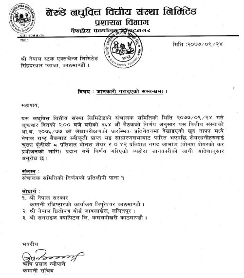 नेरुडे लघुवित्तको लाभांश घोषणा