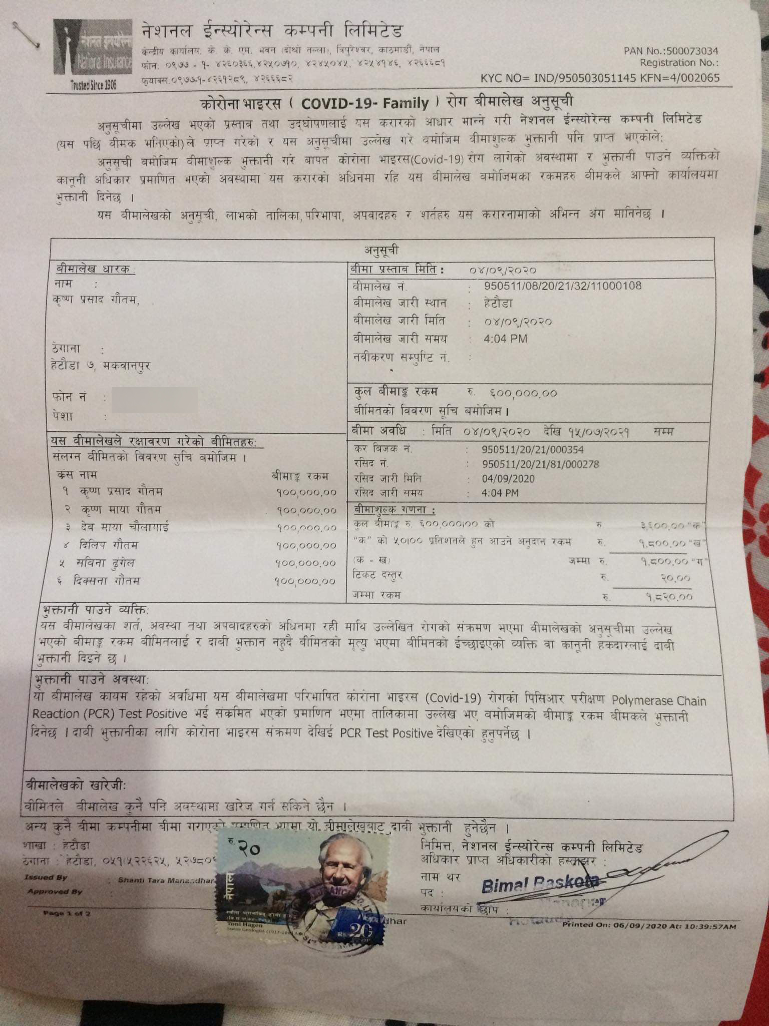 नेशनल इन्स्योरेन्सद्वारा कोरोना बीमाको दावी लिन अस्वीकार