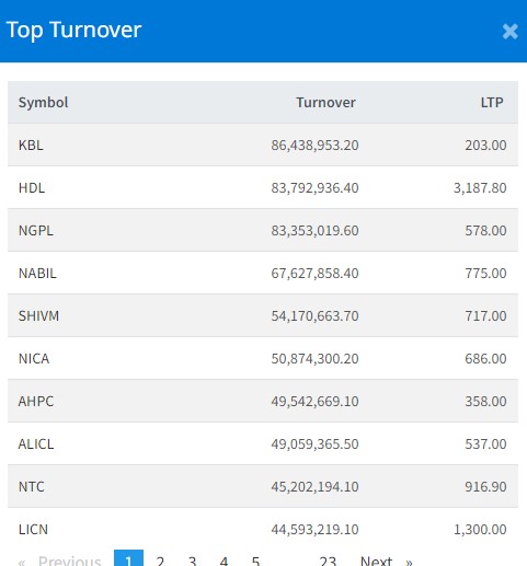 हिमालयन डिष्लिरीको ८ करोड ३७ लाख रुपैयाँको शेयर कारोबार भएको छ । ङादी ग्रप पावरको ८ करोड ३३ लाख रुपैयााको शेयर कारोबार भएको छ ।