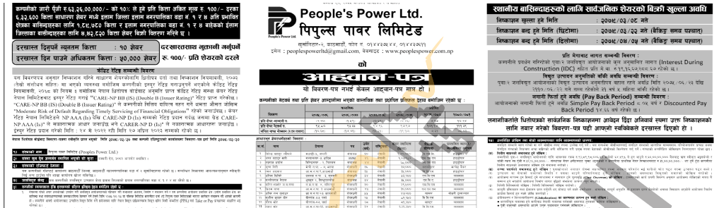 पिपुल्स पावरले असार ८ गतेदेखि आइपीओ निष्काशन गर्दै, क-कसले दिन पाउँछन् आवेदन ?