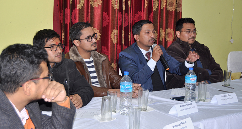 ‘पुँजिबजार विकास र विस्तारको सम्भावना एवम् आगामी चुनौति विषयमा छलफल’ विषयक कार्यक्रम बोर्डकै सहयोगमा आयोजना गरिएको हो । बोर्डका निर्देशक शर्माले कार्यपत्र प्रस्तुत गर्दै १७ खर्ब १७ अर्बको पुँजि बजार विस्तार भएको जानकारी दिए । साथै उनले ४४२ वटा संस्थामाथि नियमनकारी निकायको हैसियतमा बोर्डले नियमन गर्दै आएको र अब नयाँ बस्तु विनियम समेत गर्ने कम्पनीहरुको पनि नियमन गर्ने लक्ष्यका साथ अघि बढिरहेको बताए ।
