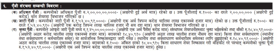 जारी पुँजी : एक अर्ब ५३ करोड ४० लाख ९१ हजार