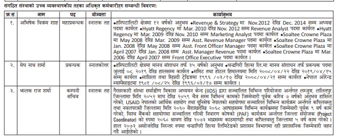 संस्थापक शेयरधनीको बारेमा जानकारी :