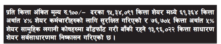 चुक्ता पुँजी : एक अर्ब ५३ करोड ४० लाख ९१ हजार ( आईपीओ पछि )