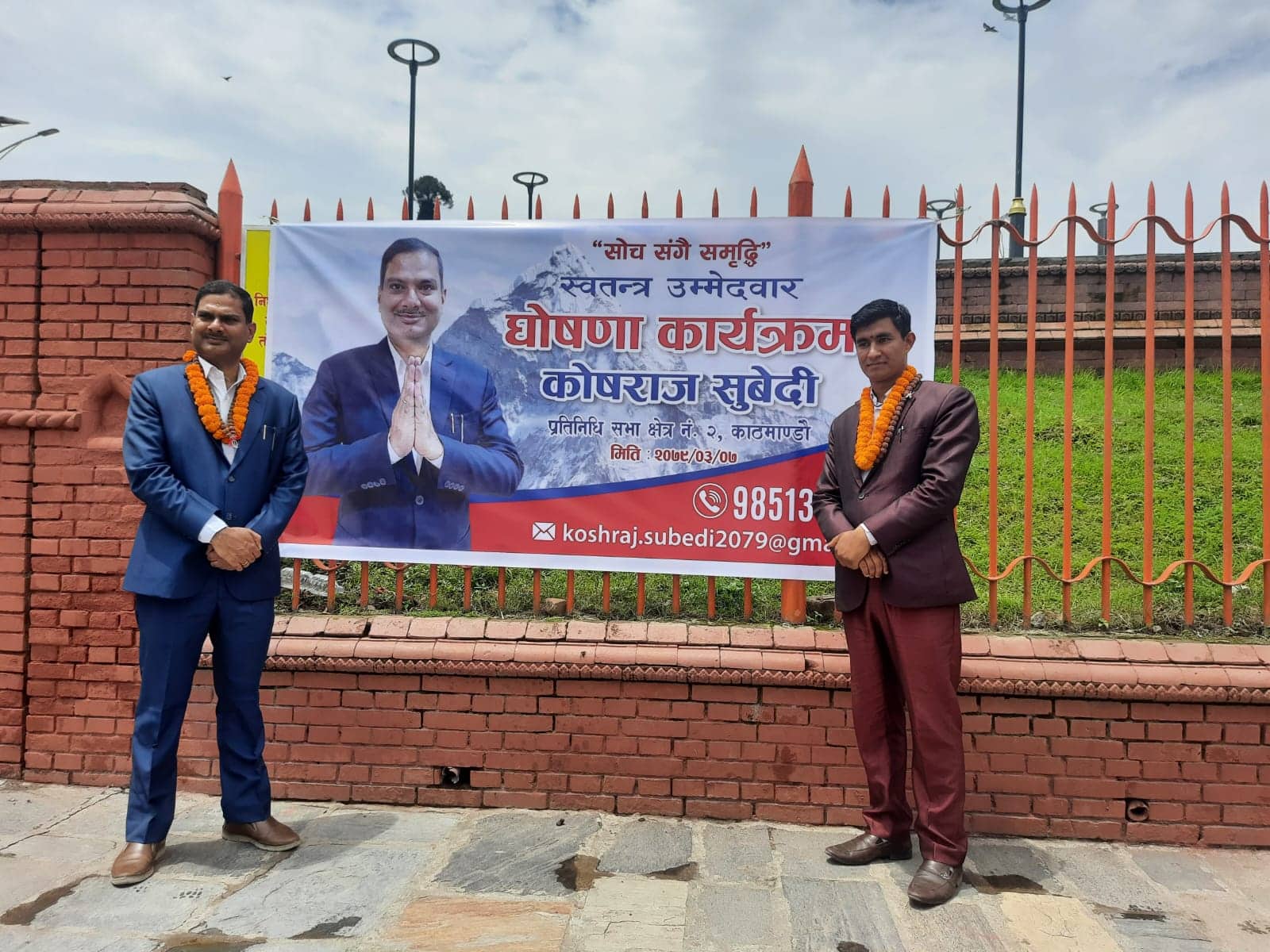 काठमाडौं । पूर्व बीमाकर्मी कोषराज सुवेदी काठमाडौं क्षेत्र नम्बर २ बाट चुनावी मैदानमा उत्रिने भएका छन् । प्रतिनिधि सभा काठमाडौं क्षेत्र नम्बर २ मा स्वतन्त्र उम्मेदवारको घोषणा गरेका सुवेदी विगत २१ वर्षदेखि वित्तीय क्षेत्रमा छन् ।