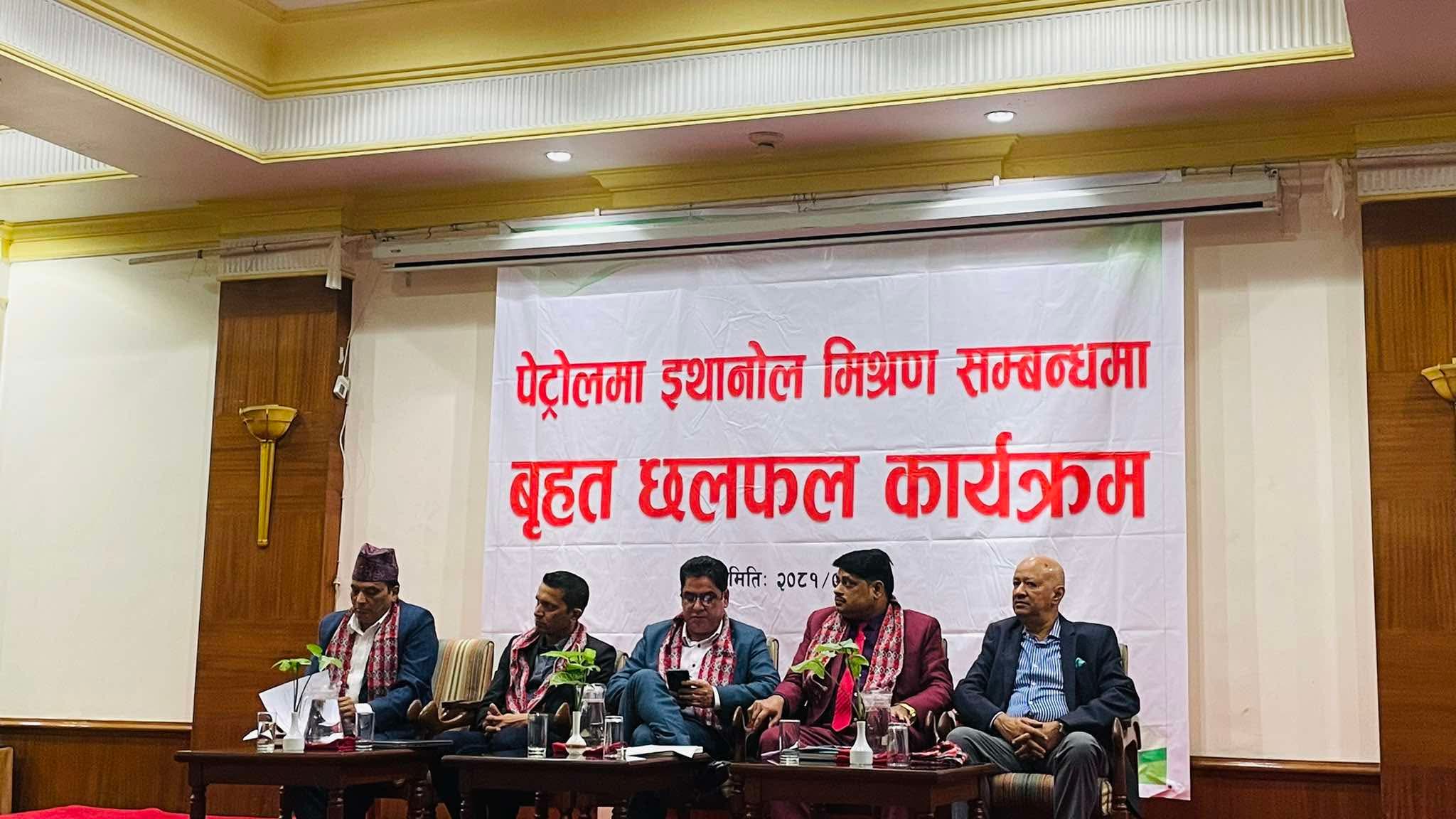 ‘केही समय अघिसम्म नेपालले ४ हजार किलोलिटर पेट्रोलियम पदार्थ आयात गर्दै थियो । सो परिणाम अहिले घटेर २ हजार किलोलिटर हाराहारीमा झरिसकेको छ । यसरी आधा नै आयात घट्दैगर्दा थप पेट्रोलियम पदार्थमा इथानोल मिश्रणको किन आवश्यक पर्यो रु’ उनले जिज्ञासा राखे ।