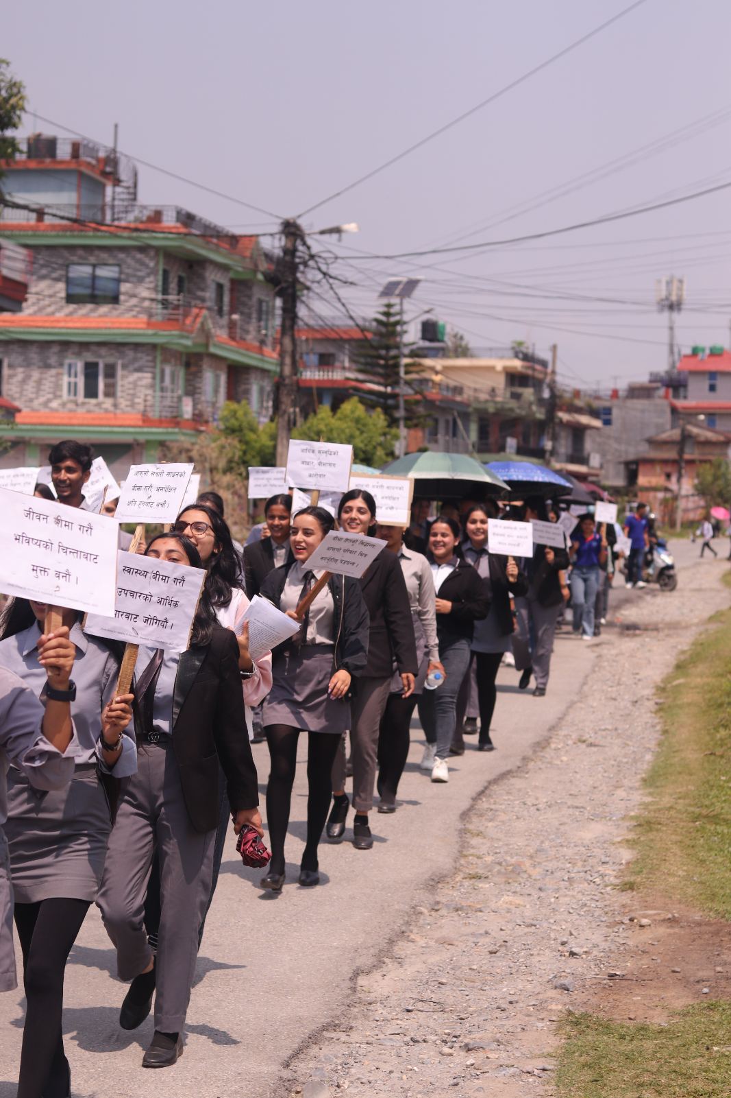 विद्यार्थीहरुले उक्त र्यालीमा बिभिन्न नाराहरु लेखिएको प्लेकार्डहरु र ब्यानरहरु बोकेर विश्वविद्यालय वरिपरिका सडक हुंदै पृथ्वीराजमार्गसम्म पुगेका थिए । सर्वसाधारणहरुलाई जनचेतनामूलक पर्चाहरु वितरण गरिएको थियो । राजमार्गमा सवारी साधनहरु भित्र पनि पर्चा बितरण गरिएको थियो । पर्चामा बीमाका प्रकार, महत्वको बारेमा प्रकाश पार्नुको साथै बीमा कम्पनीहरुको नाम र सम्पर्क नम्बरहरु उल्लेख गरिएको थियो ।