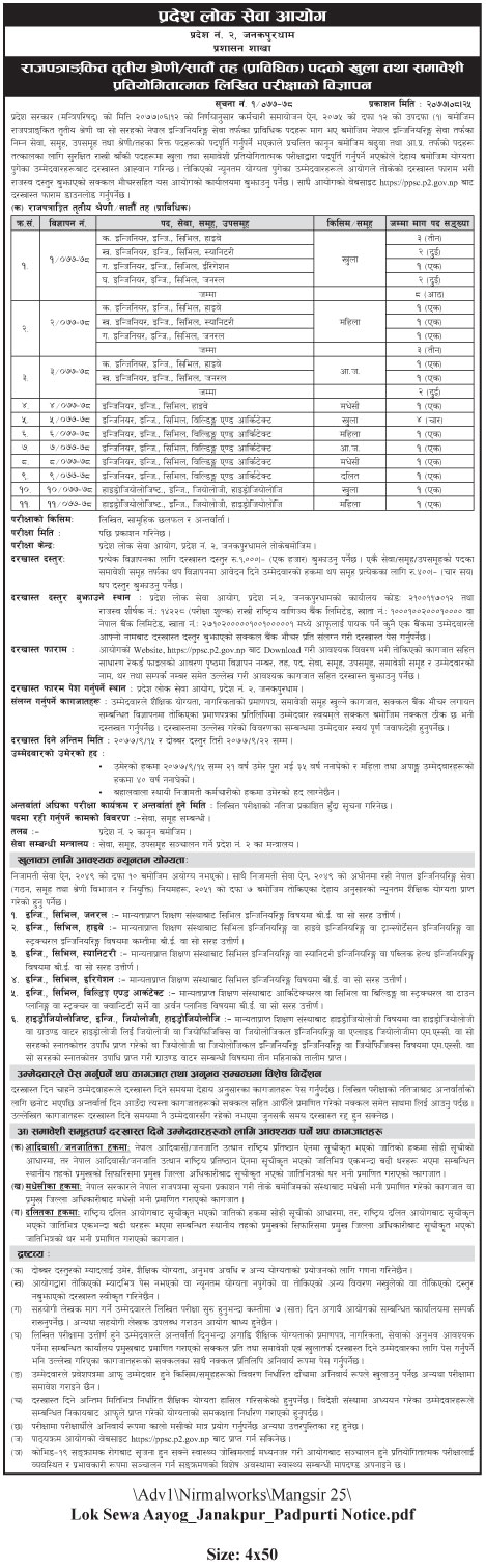 आयोगले बिहीबार एक सूचनामार्फत खुला तथा समावेशीमा आवेदन खुल्ला गरिएको जनाएको छ । उक्त सो पदहरुमा पुस १५ गतेभित्र आवेदन दिन सक्ने सूचनामा उल्लेख छ । यस्तै दोब्बर दस्तुर तिरेर भने पुस २२ गतेसम्म पनि आवेदन दिन सकिनेछ ।