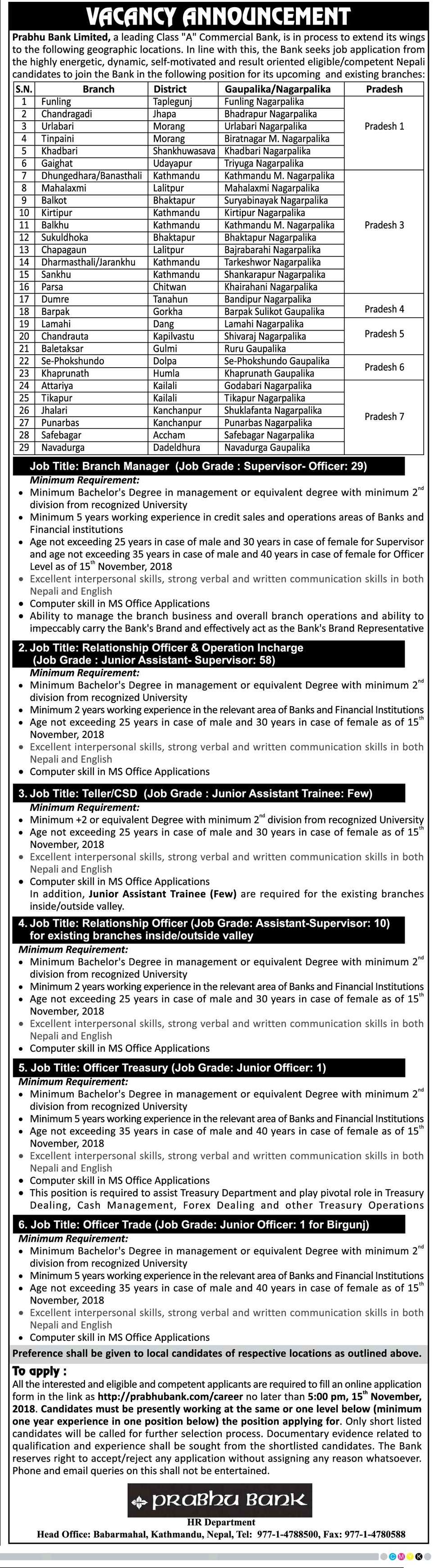 प्रभु बैंकले विभिन्न पदका लागि १०० भन्दा बढी कर्मचरी माग गरेको छ ।