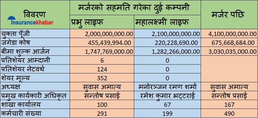 प्रभु र महालक्ष्मी लाइफ विच मर्जरको सहमति, यस्तो बन्दैछ मर्जर पछिको कम्पनी