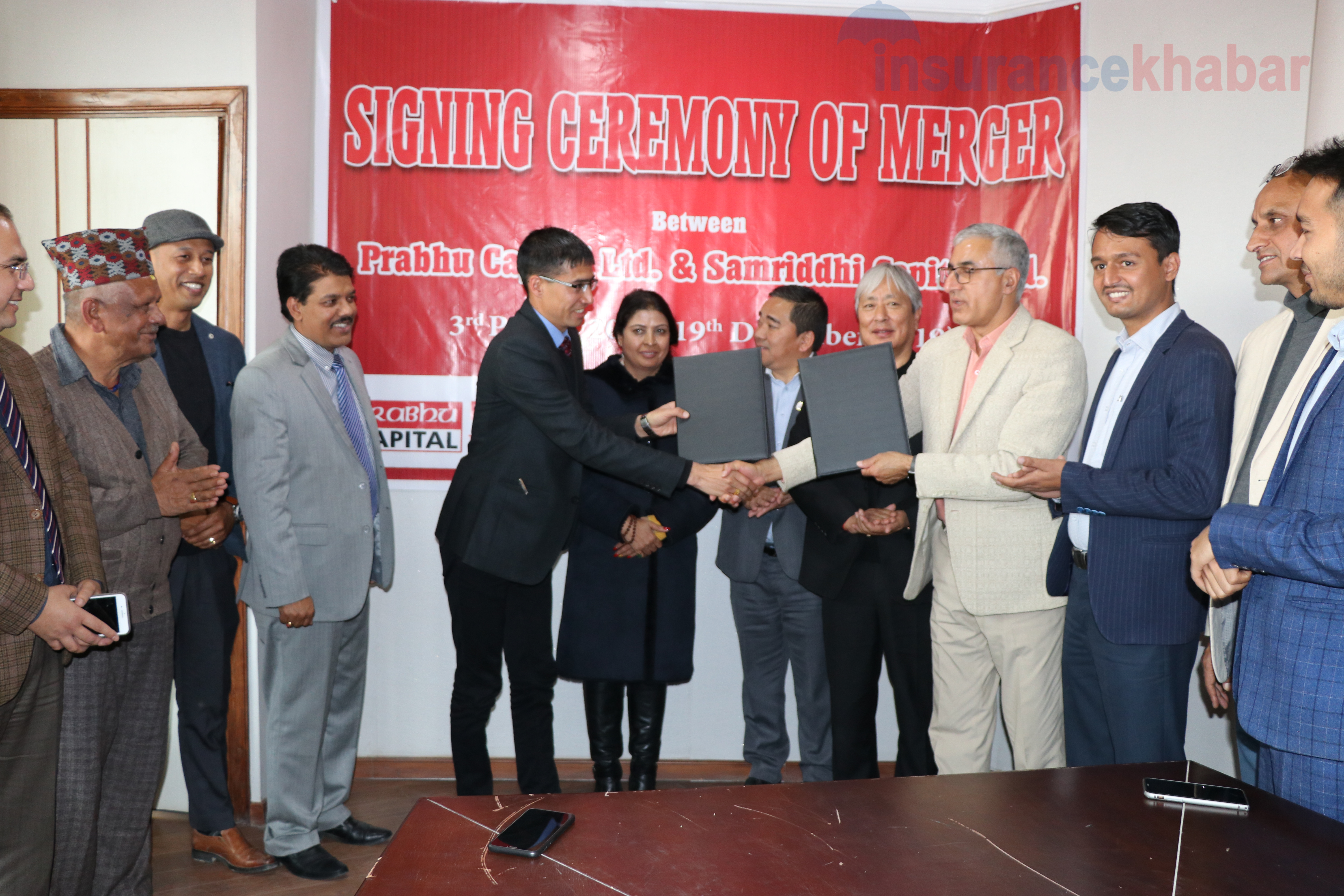 बिहिवार एक कार्यक्रमकाबीच प्रभु क्यापिटलका सञ्चालक भुपिन्द्र्र खत्री र समृद्धिका अध्यक्ष एलपी भानु शर्माले आपसमा गाभिने सम्बन्धी सम्झौता पत्रमा हस्ताक्षर गरेका हुन् । आज सम्पन्न भएको सम्झौता अनुसार नयाँ बन्ने कम्पनीको नाम प्रभु क्यापिटल राखिनेछ ।