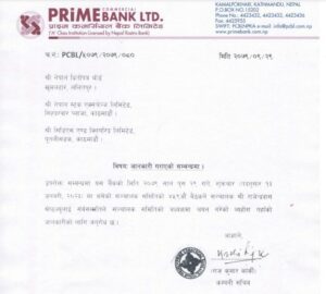 प्राइम बैंकको संचालक समितिको अध्यक्षमा राजेन्द्रदास श्रेष्ठ