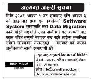 कम्पनीले सफ्टवयेर सिस्टम स्त्तरोन्नति तथा डाटा माइग्रेशन कार्य गर्ने भएकाले उक्त अवधिसम्म कम्पनीबाट प्रदान हुने सम्पुर्ण सेवाहरु बन्द हुने कम्पनीले जनाएको छ ।
