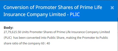 प्राइम लाइफको संस्थापक शेयर सर्वसाधारणमा परिणत