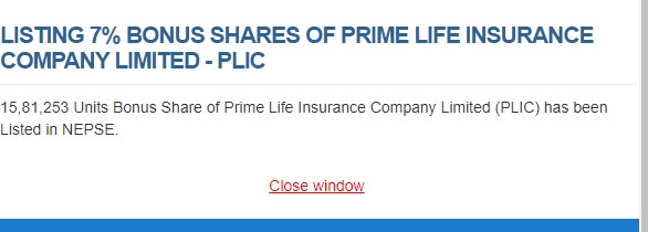 त्यस्तै, प्राइम लाइफ इन्स्योरेन्सका १५ लाख ८१ हजार २ सय ५३ कित्ता शेयर सूचीकृत भएको हो ।कम्पनीले शेयरधनीहरुलाई प्रदान गरेको ७ प्रतिशत बोनस वापतको उक्त शेयर आज सूचीकृत भएको हो ।