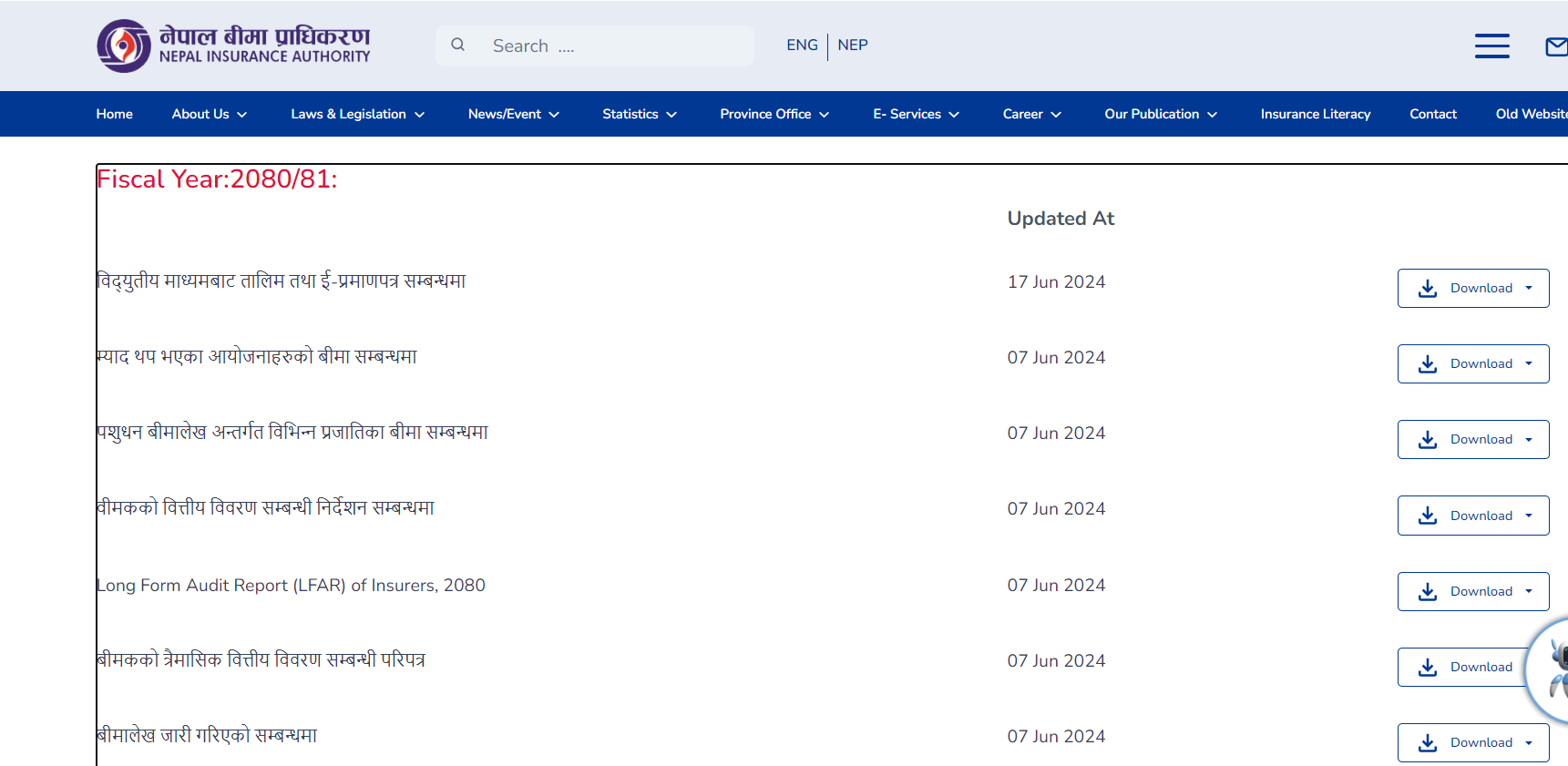 काठमाडौं । बीमा नियामक नेपाल बीमा प्राधिकरणको वेबसाइटमा प्रकाशित सामाग्रीको प्रकाशन वा सार्वजनिक गरिएको मिति थाहा पाउन कठिन हुने भएको छ । प्राधिकरणले वेबसाइटको विभिन्न खण्डमा प्रविष्ट गरेको दस्तावेजहरू राखिएको मिति हेर्दा अधिकांशमा आजको मिति नै देखा पर्ने थालेकाले झुक्किने अवस्था सिर्जना भएको हो।
