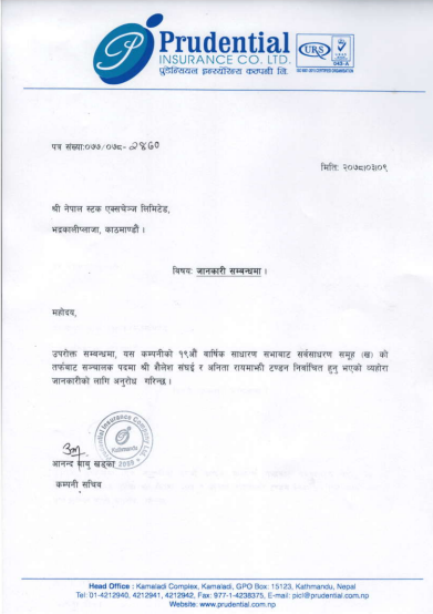 काठमाडौं । प्रुडेन्सियल इन्स्योरेन्स कम्पनीमा दुई जना सञ्चालक निर्वाचित भएका छन् । कम्पनीको असार ६ गते सम्पन्न १९ औं वार्षिक साधारण सभाले दुई जना सञ्चालक निर्वाचित गरेको हो । उक्त सभाबाट सर्वसाधारण समूहको तर्फबाट शैलेश संघई र अनिता रायमाझी टण्डन निर्वाचित भएका हुन् ।