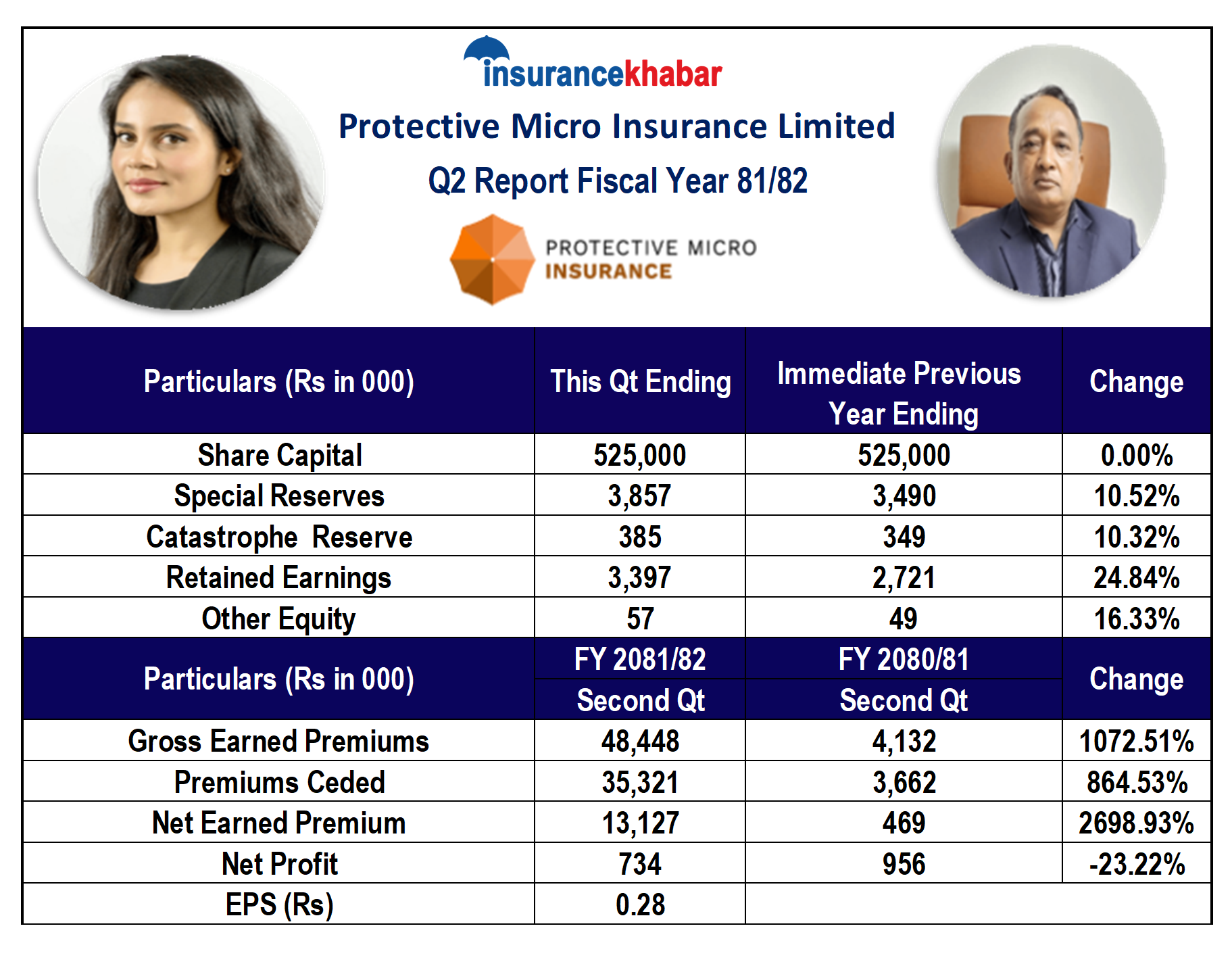 काठमाडौं । प्रोटेक्टिभ माइक्रो इन्स्योरेन्स कम्पनीले चालु आर्थिक वर्षको दोस्रो त्रैमास (साउन–पुस)सम्मको अपरिष्कृत वित्तीय विवरण सार्वजनिक गरेको छ।