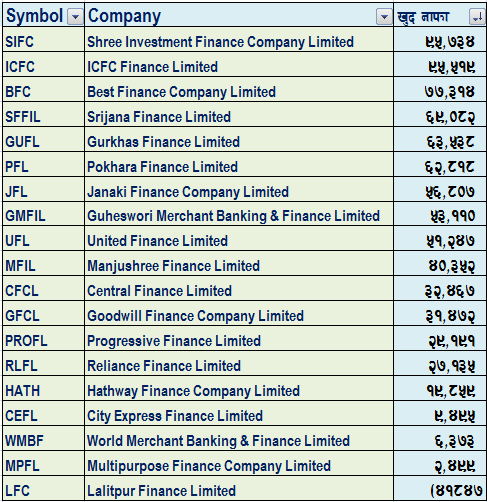 खुद नाफाको आधारमा :