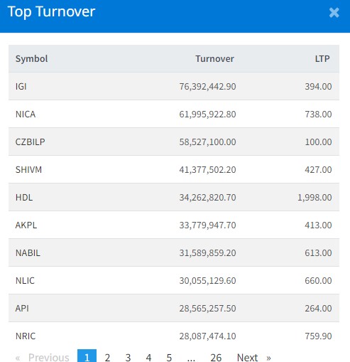 आज दिनभरिमा ५१ लाख ८५ हजार ११४ कित्ता शेयर किनबेच हुँदा १ अर्ब २७ करोड ४० लाख रुपैयाँ शेयर कारोबार भएको छ । आज सबैभन्दा धेरै आइएमई जनरल इन्स्योरेन्स कम्पनीको शेयर काारोबार भएको छ । आज कम्पनीको ७ करोड २४ लाख रुपैयाँको शेयर कारोबार भएको छ । एनआइसी एशिया बैंकको ६ करोड १९ लाख रुपैयाँको शेयर कारोबार भएको छ ।