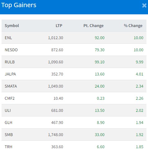 आज सबैभन्दा धेरै इमर्जिङ नेपाल र नेष्डो समृद्ध लघुवित्त वित्तीय संस्थाका लगानीकर्ताले कमाएका छन् । कम्पनीका लगानीकर्ताले १० प्रतिशतका दरले कमाएका हुन् । राष्ट्र उत्थान लघुवित्त वित्तीय संस्थाका लगानीकर्ताले ९ दशमलव ९९ प्रतिशतका दरले कमाएका छन् । जाल्पा सामुदायिक लघुवित्त वित्तीय संस्थाका लगानीकर्ताले ४ प्रतिशतका दरले कमाएका छन् ।