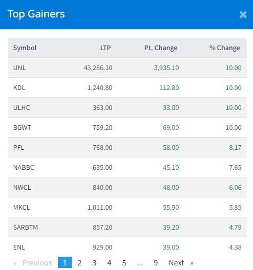 आज सबैभन्दा धेरै युनिलिभर नेपाल, कालिञ्चोक दर्शन, अपर लोहरे खोला र भगवती हाइड्रोपावर कम्पनीका लगानीकर्ताले कमाएका छन् । आज यी चार कम्पनीका लगानीकर्ताले १० प्रतिशतका दरले कमाएका छन् ।