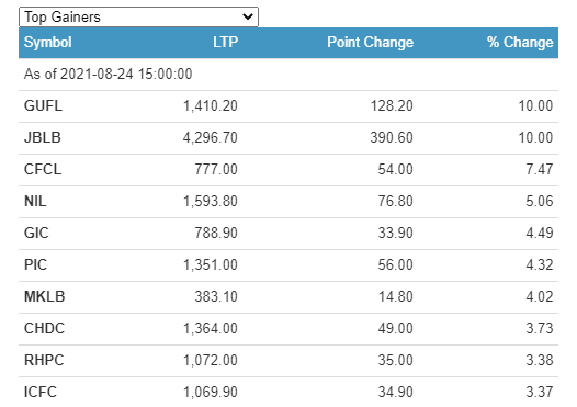 आज सबैभन्दा धेरै गोर्खाज फाइनान्स कम्पनी र जीवन विकास लघुवित्तका लगानीकर्ताले कमाएका छन् । कम्पनीका लगानीकर्ताले १० प्रतिशतका दरले कमाएका हुन् । सेन्ट्रल फाइनान्स कम्पनीका लगानीकर्ताले ७ दशमलव ४७ प्रतिशतका दरले कमाएका छन् । नेको इन्स्योरेन्स कम्पनीका लगानीकर्ताले ५ दशमलव ०६ प्रतिशतका दरले कमाएका छन् ।