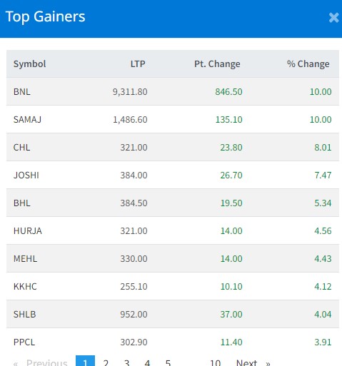 आज बजार घट्दा पनि ७९ कम्पनीका लगानीकर्ता मालामाल भएका छन् । यी कम्पनीको शेयर मुल्य बृद्धि भएको छ । आज सबैभन्दा धेरै बोटलर्स नेपाल बालाजू र समाज लघुवित्त वित्तीय संस्थाका लगानीकर्ताले कमाएका छन् । आज यी दुई कम्पनीका लगानीकर्ताले १० प्रतिशतका दरले कमाएका हुन् । छ्याङदी हाइड्रोका लगानकिर्ताले ८ दशलमव ०१ प्रतिशतका दरले कमाएका छन् । जोशीका लगानीकर्ताले ७ प्रतिशतका दरले कमाएका छन् ।
