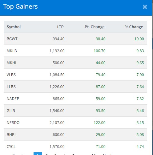 आज सबैभन्दा धेरै भगवती हाइड्रोपावर कम्पनीका लगानीकर्ताले कमाएका छन् । आज यस कम्पनीका लगानीकर्ताले १० प्रतिशतका दरले कमाएका छन् । मनकामना स्मार्ट लघुवित्त वित्तीय संस्थाका लगानीकर्ताले ९ दशलमव ८३ प्रतिशतका दरले कमाएका छन् । माइ खोला हाइड्रोपावर कम्पनीका लगानीकर्ताले ९ दशलमव ६५ प्रतिशतका दरले कमाएका छन् ।