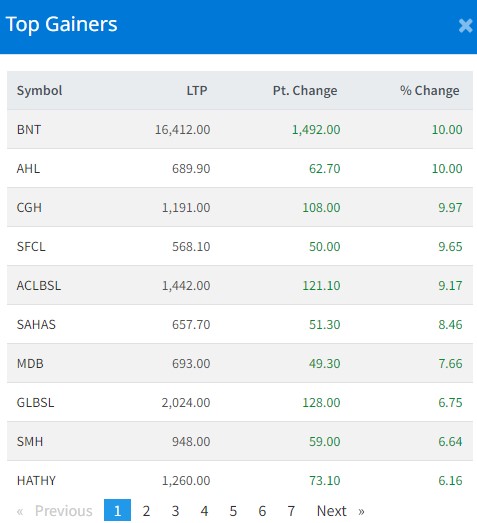 आज सबैभन्दा धेरै बोटलर्स नेपाल तराई र एशयन हाइड्रोका लगानीकर्ताले कमाएका छन् । आज यी दुई कम्पनीका लगानीकर्ताले १० प्रतिशतका दरले कमाएका छन् । चन्द्रगिरी हिल्सका लगानीकर्ताले ९ दशलमव ९७ प्रतिशतका दरले कमाएका छन् । समृद्धि फाइनान्सका लगानीकर्ताले ९ दशमलव ६५ प्रतिशतका दरले कमाएका छन् ।