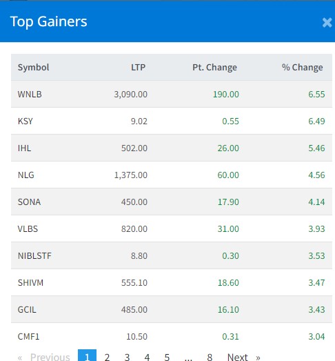 आज सबैभन्दा धेरै विन नेपाल लघुवित्त वित्तीय संस्थाका लगानीकर्ताले कमाएका छन् । आज यस कम्पनीका लगानीकर्ताले ६ दशलमव ५५ प्रतिशतका दरले कमाएका छन् । कुमारी सबल योजनाका इकाईधनीले ६ दशलमव ४९ प्रतिशतका दरले कमाएका छन् । इङवा हाइड्रोका लगानीकर्ताले ५ दशलमव ४६ प्रतिशतका दरले कमाएका छन् ।
