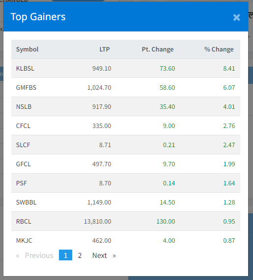सर्वाधिक धेरै बढ्नेमा अन्य कम्पनीहरु क्रमश सेन्ट्रल फाइनान्स, गुडविल फाइनान्स, स्वाभिमान लघुवित्त, राष्ट्रिय बीमा कम्पनी, मैलुङ खोला जलविद्युत रहेका छन् ।