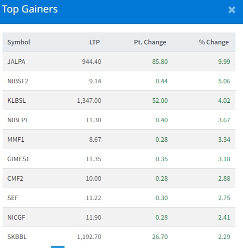 आज सबैभन्दा धेरै जाल्पा सामुदायिक लघुवित्त वित्तीय संस्थाका लगानीकर्ताले कमाएका छन् । कम्पनीका लगानीकर्ताले ९ दशमलव ९९ प्रतिशतका दरले कमाएका छन् । एनआइबिएल समृद्धि फण्डका इकाइधनीले ५ प्रतिशतका दरले कमाएका छन् ।
