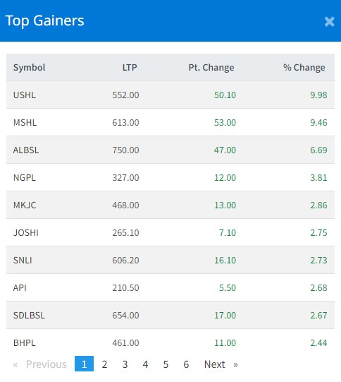 आज सबैभन्दा धेरै अपर साङ्गे हाइड्रोपावर कम्पनीका लगानीकर्ताले कमाएका छन् । आज यस कम्पनीका लगानकिर्ताले ९ दशलमव ९८ प्रतिशतका दरले कमाएका छन् । मिड सोलु हाइड्रोपावरका लगानीकर्ताले ९ दशलमव ४६ प्रतिशतका दरले कमाएका छन् । आशा लघुवित्तका लगानकिर्ताले ६ दशलमव ६९ प्रतिशतका दरले कमाएका छन् ।