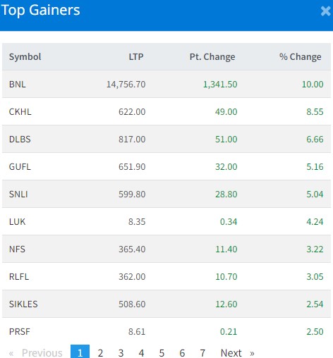 आज सबैभन्दा धेरै बोटलर्स नेपाल बालाजूका लगानीकर्ताले कमाएका छन् । आज यस कम्पनीका लगानीकर्ताले १० प्रतिशतका दरले कमाएका हुन् । चिरख्वा हाइड्रोपावर कम्पनीका लगानीकर्ताले ८ दशलमव ५५ प्रतिशतका दरले कमाएका छन् । घौलागिरी लघुवित्त वित्तीय संस्थाका लगानीकर्ताले ६ दशमलव ६६ प्रतिशतका दरले कमाएका हुन् ।