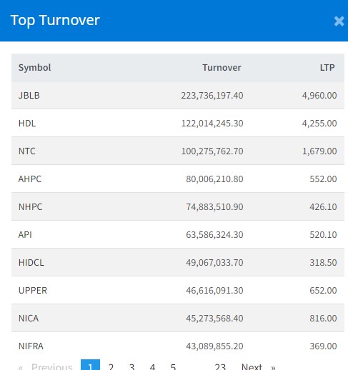 त्यस्तै, हिमालयन डिष्टिलरीको १२ करोड २० लाख रुपैयाँको शेयर कारोबार भएको छ । नेपाल टेलिकमको १० करोडमाथिको शेयर कारोबार भएको छ । अरुण कावेली पावरको ८ करोडमाथिको शेयर कारोबार भएको छ ।