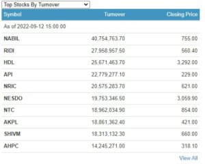 यसैगरी आज रिडी हाइड्रोपावर कम्पनीको २ करोड ७९ लाख रुपैयाँको शेयर कारोबार भएको छ भने हिमालयन डिष्टिलरीको २ करोड ५६ लाख रुपैयाँको शेयर कारोबार भएको छ । आज अपि पावरको भने २ करोड २७ लाख रुपैयाँको शेयर कारोबार भएको छ । नेपाल रि इन्स्योरेन्सको कम्पनीको २ करोड ५ लाख रुपैयाँको शेयर कारोबार भएको छ ।