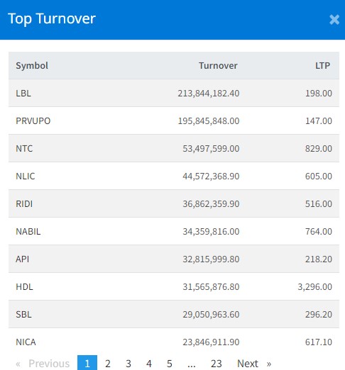 बजार घट्दा यी हुन् टप टेन कारोबार भएका कम्पनी